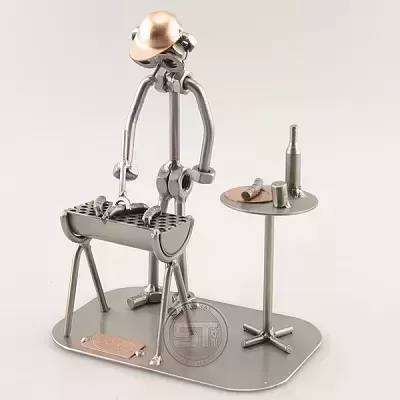 Der Grillmeister beim Grillen an einem schönen lauen Sommerabend. Ideal, um sich für die Einladung zum Grillen zu bedanken. afmeting 17x13x16 cm, Gewicht:0.60 kgProductspecificaties