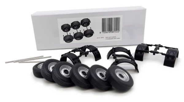Parts Set 3-assen + 6 wielen + 6 spatborden - 1:32Productspecificaties