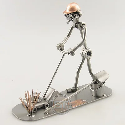 De tuinman bij zijn mooiste werk, hij verzorgt niet alleen de planten maar ook het gras. afmeting 17x17x6 cm, Gewicht:0.40 kgProductspecificaties