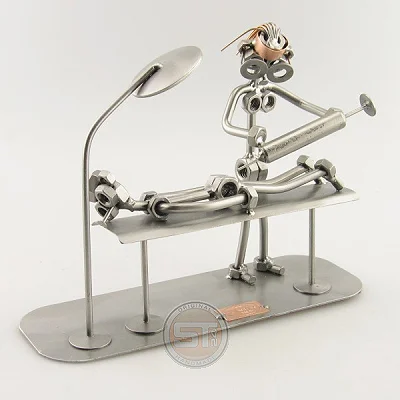Autsch...die Krankenschwester gibt dem Patienten auf der Liege eine Spritze in den Allerwertesten. afmeting 12x7x17 cm, Gewicht:0.66 kgProductspecificaties