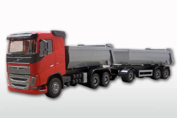 Volvo FH16 6x4 Kieper Rood met 3-As Kieptrailer Zilver - 1:25Productspecificaties